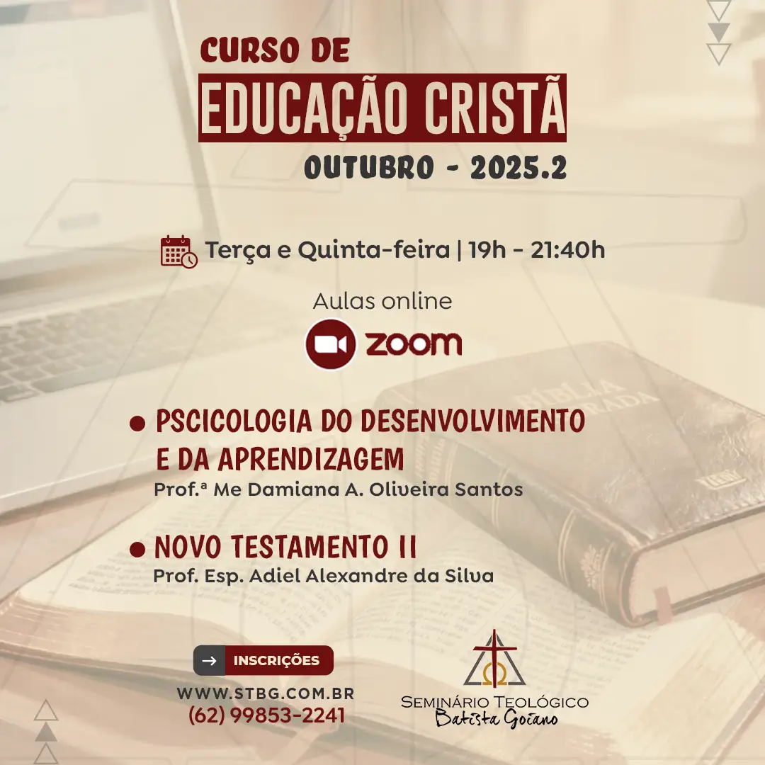 O Curso de Formação Ministerial em Educação Cristã do Seminário Teológico Batista Goiano foi desenvolvido para preparar líderes, educadores e pastores que desejam atuar na formação espiritual e educacional de pessoas em igrejas, escolas e organizações cristãs.
